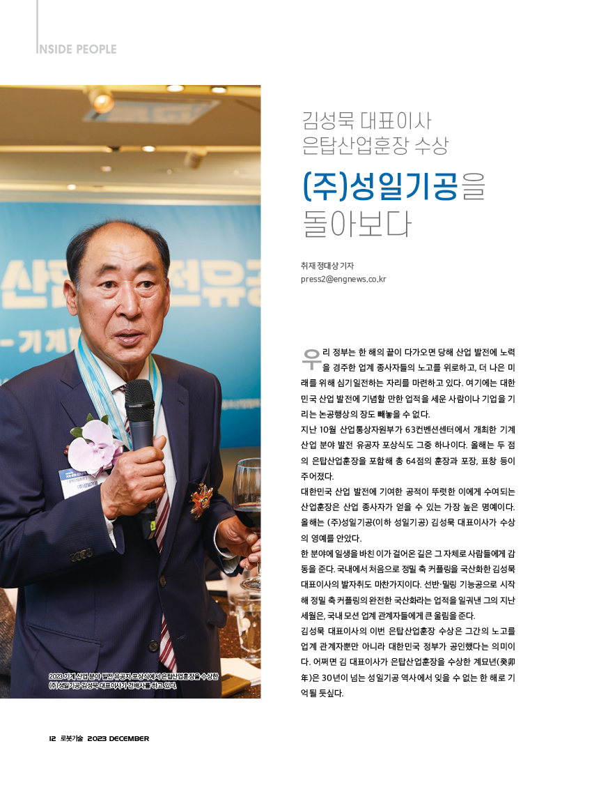 [기사] 산업훈장(은탑) 수훈 - 기계산업분야
