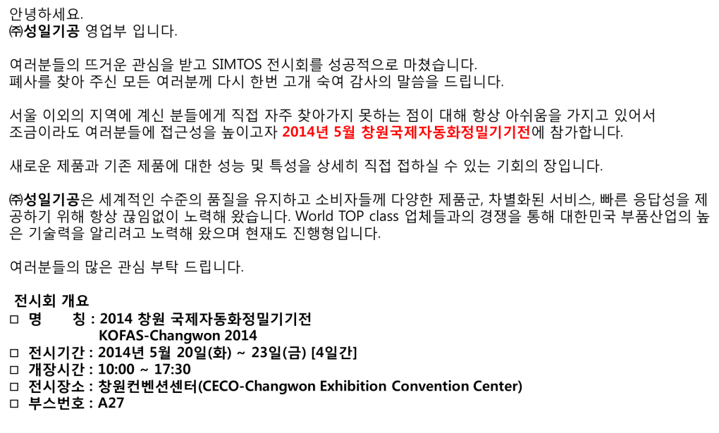 문의 사항은 (주)성일기공 영업부로 연락주시기 바랍니다.