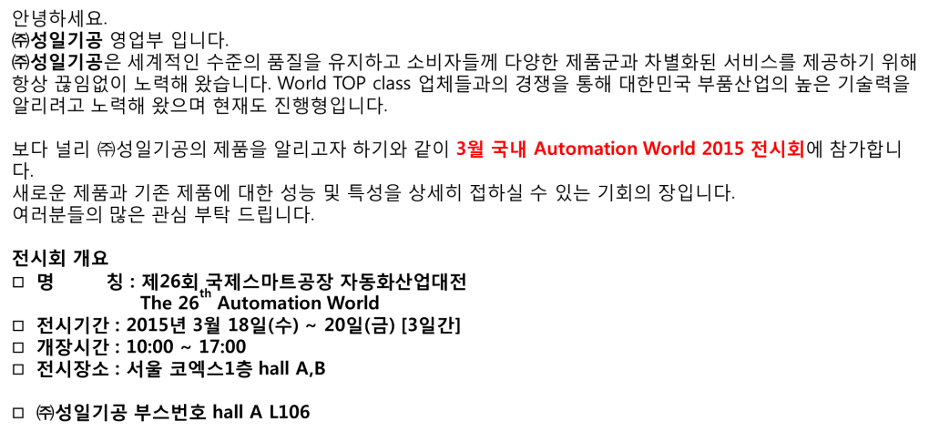 2015 창원 국제자동화정밀기기전 참가합니다.
