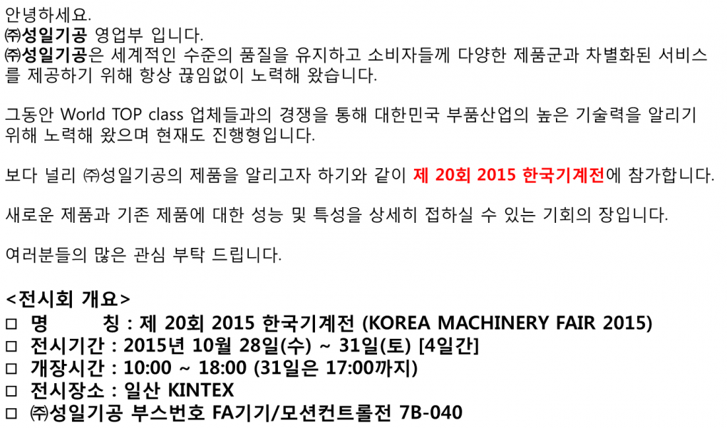 2015년 창원 국제공작 및 관련부품전에 참가합니다