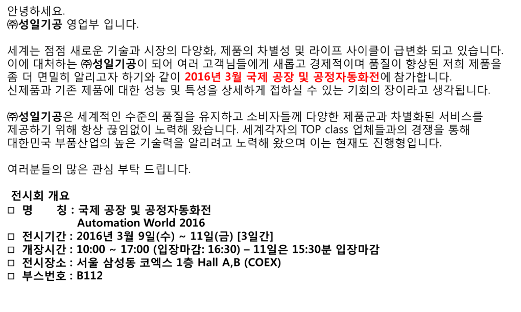 2016년 3월 서울 코엑스 국제 공장 및 공정자동화전에 참가합니다