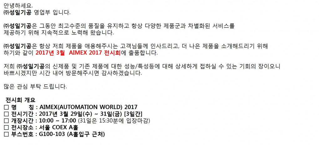 2017.3.29-3.31 AIMEX 2017 전시회 출품합니다