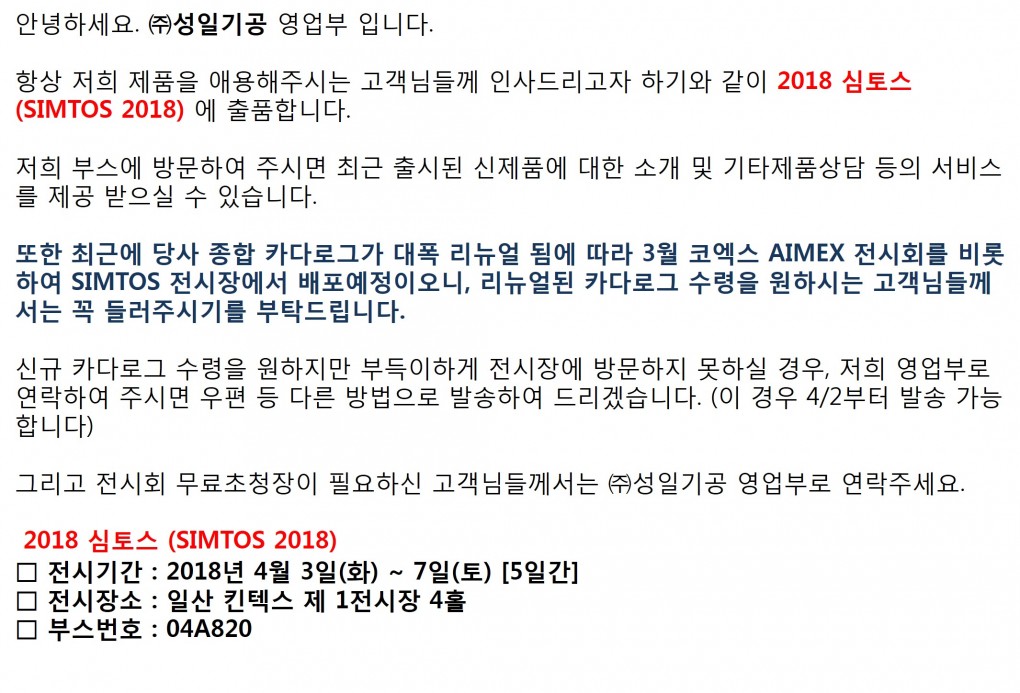2018.4.3-7 심토스2018 (SIMTOS) 전시회에 초대합니다