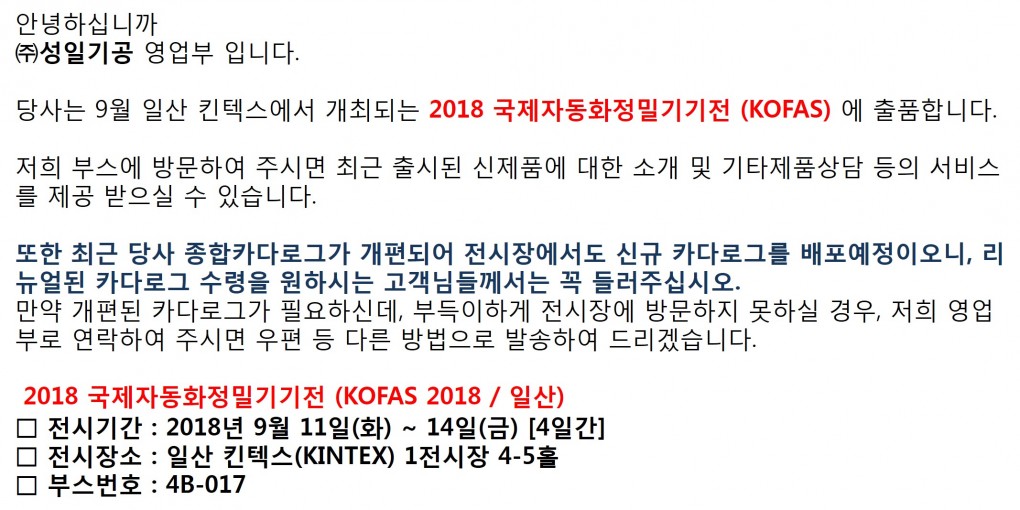 또한, 실물초청장 혹은 전자파일이 필요하신 고객님들께서는 ㈜성일기공 영업부로 연락주시면 안내해드리겠습니다.