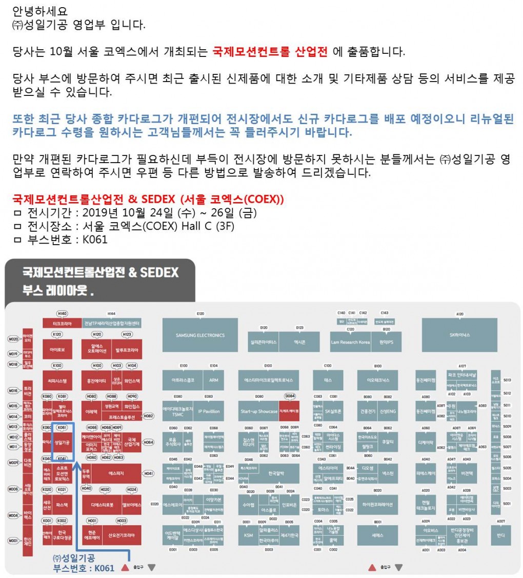 2018.10.24-26 국제모션컨트롤 산업전(서울 코엑스)에 출품 합니다.