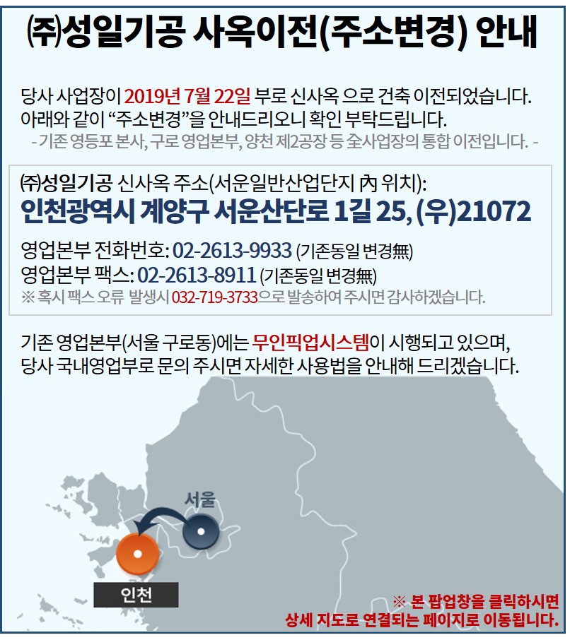 (주)성일기공 사옥이전(주소변경) 안내 & 신사옥 전경 사진