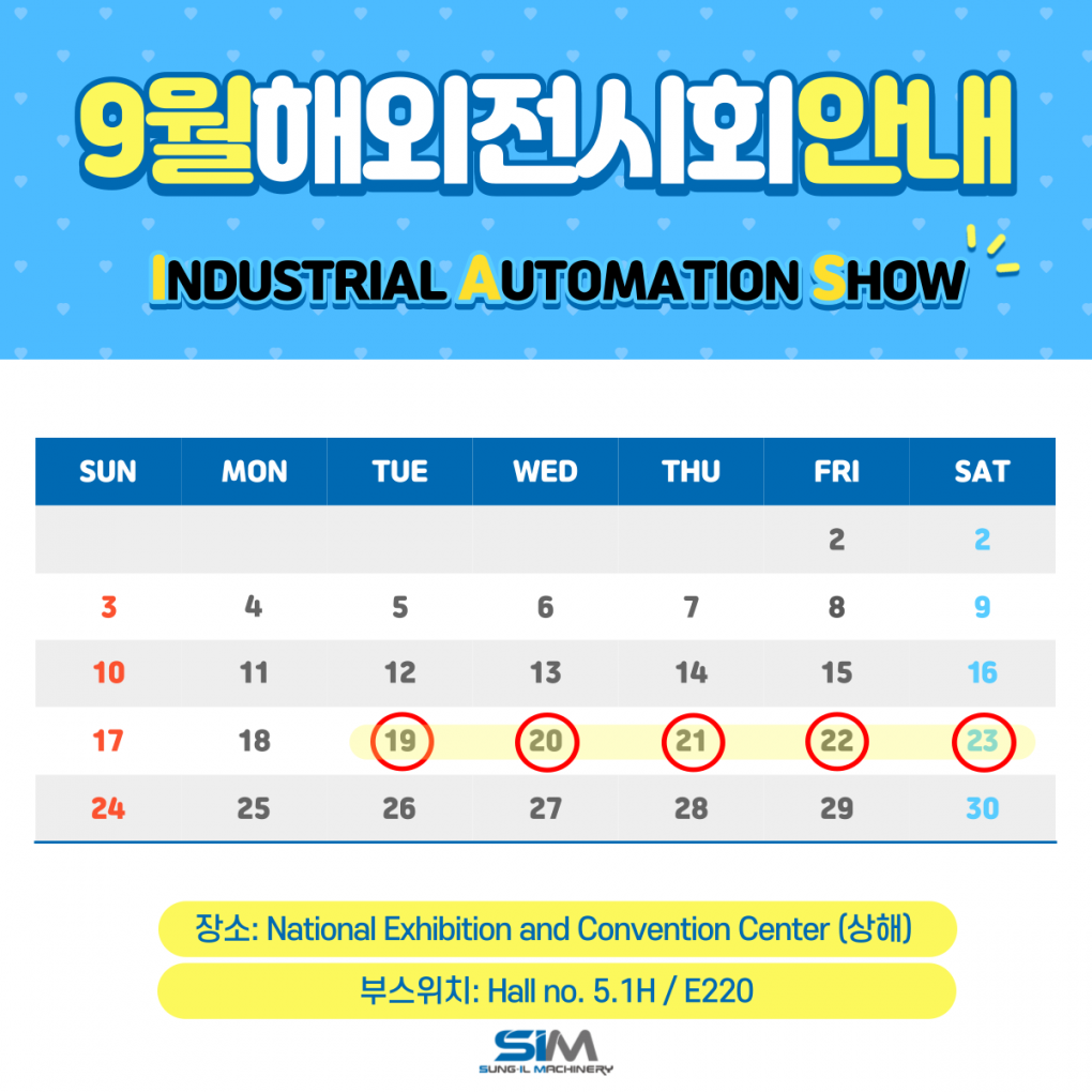 2023.09.19~23 중국 상해 IAS (INDUSTRIAL AUTOMATION SHOW) 전시회에 출품합니다.