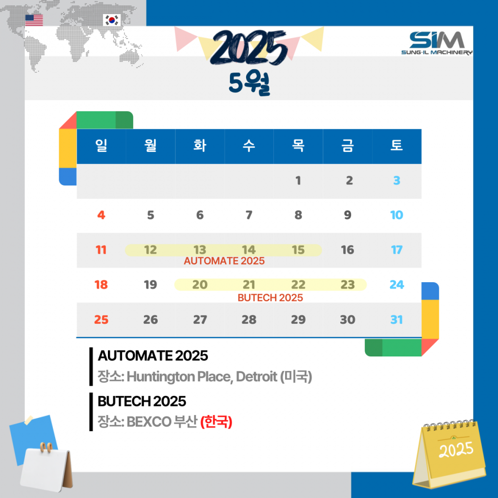 당사는 2025년 5월 미국 디트로이트 해외 전시회 1건 및 부산 벡스코 국내 전시회 1건에 출품합니다.