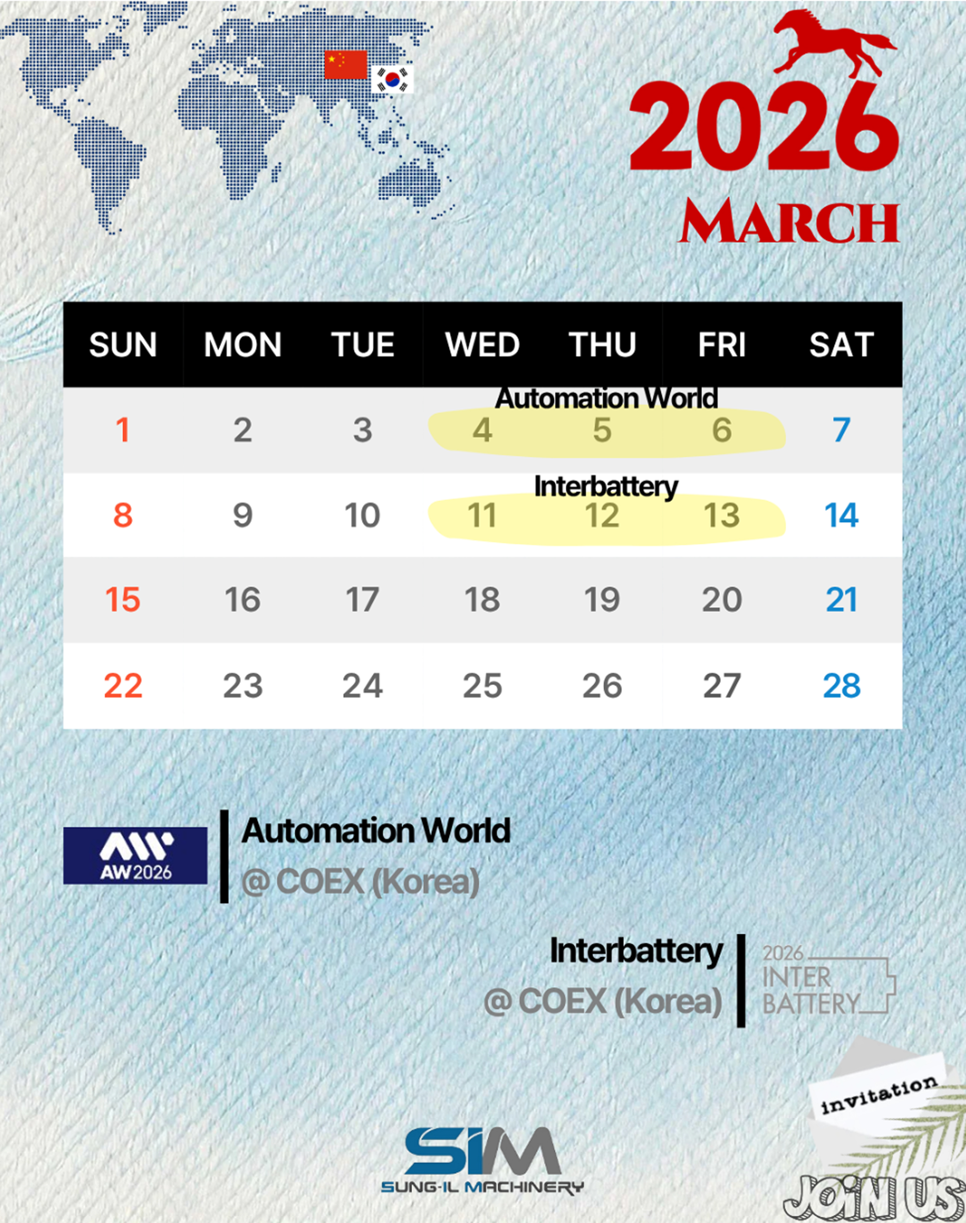 당사는 2026년 3월 "서울 코엑스에서 개최하는 AW2026 & IB2026 에 출품합니다.