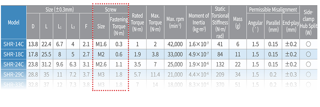 - If the fastening torque of the screw is low, the clamping force of the coupling may not be sufficiently exerted and slip may occur.