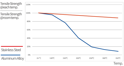 2. The heat resistance is better than aluminum alloy material’s so that it keeps the mechanical properties of materials staying normal in high temperature applications.