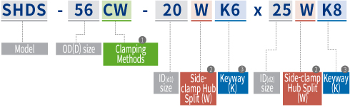 - From certain outer diameter (OD) sizes, we can provide Side-clamp Hub Split products. Please refer to “HOW TO ORDER” page for more details.