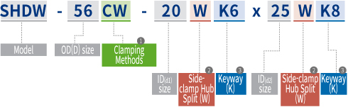 - From certain outer diameter (OD) sizes, we can provide Side-clamp Hub Split products. Please refer to “HOW TO ORDER” page for more details.