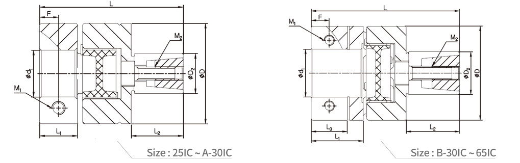 | Model | Coupling hub OD | Shaft-insertion hub OD |