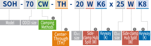 ※ You may check the sizes that Side-clamp Hub Split type is applicable from the “Dimensions / Performance” tables in the following pages.