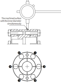 - ③ Place a dial gauge right on the surface which is machined with the inner diameter