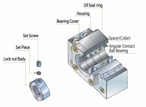 - Accompanied by a high accuracy lock-nut and collars(spacer)