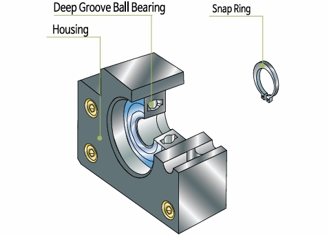 - Accompanied by a deep-groove ball bearing and a snap-ring