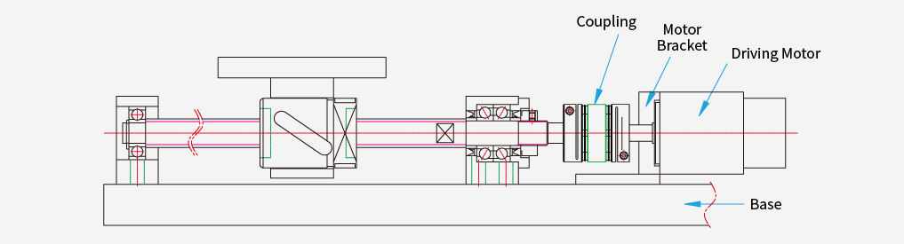1. Fully mount the motor bracket to the base accurately aligning with the ball screw.