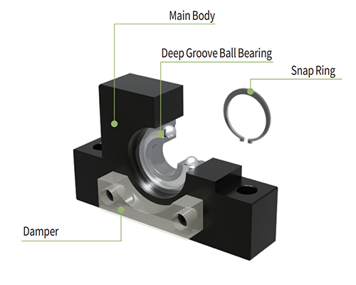 - Accompanied by a deep-groove ball bearing and a snap-ring.