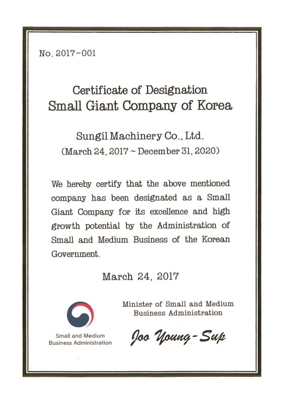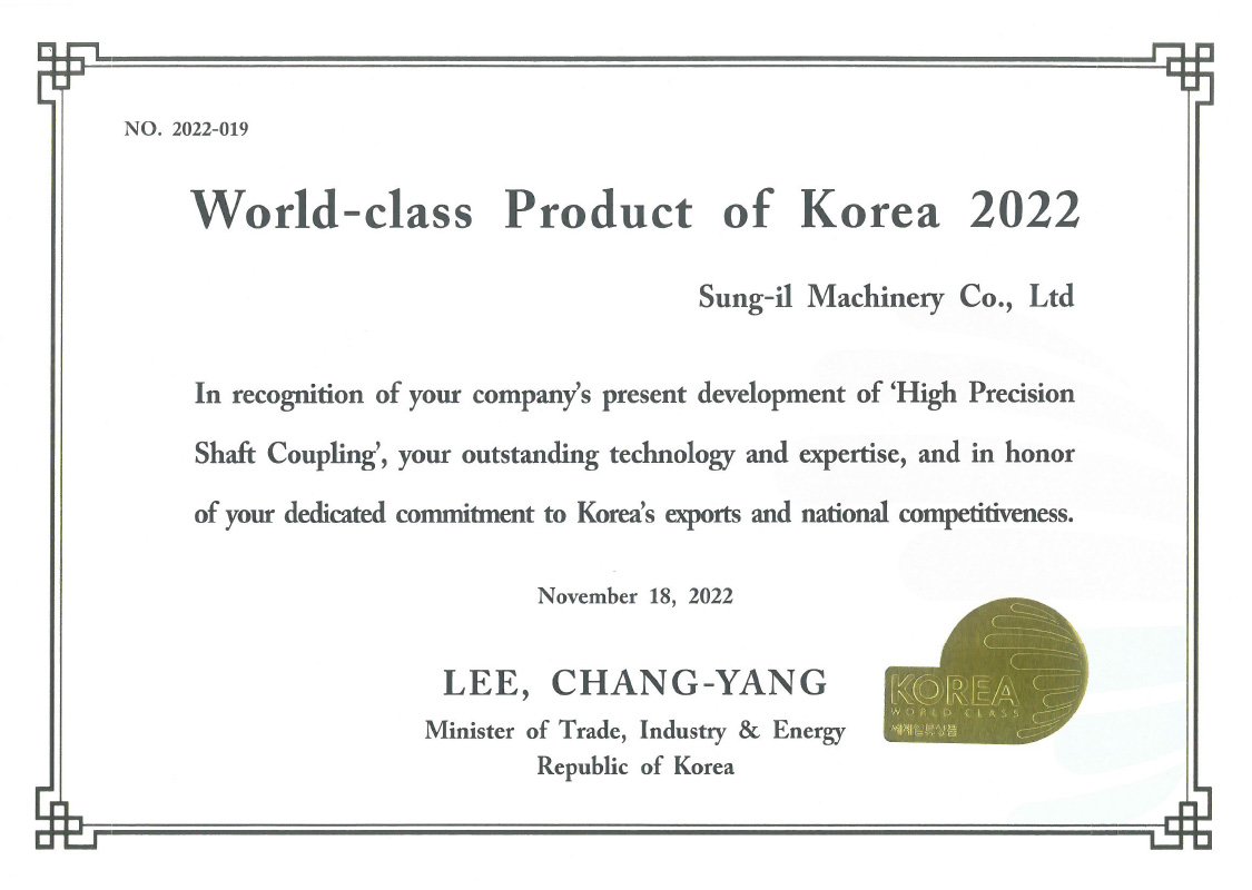 機械ロボット産業発展有功 産業通商資源部長官賞