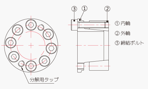 面圧を利用して軸とハブ(プーリー、ギア等)を同時に締結する