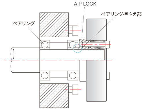 - 段加工構造 : 単体でベアリングの押さえ板の役割をし、ベアリング押さえ部品が不要です。