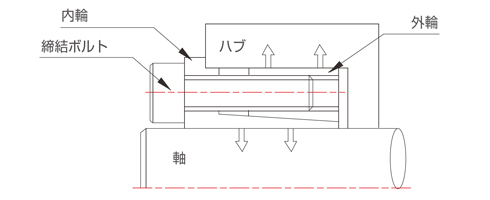 面圧を利用して軸とハブ(プーリー、ギア等)を同時に締結する