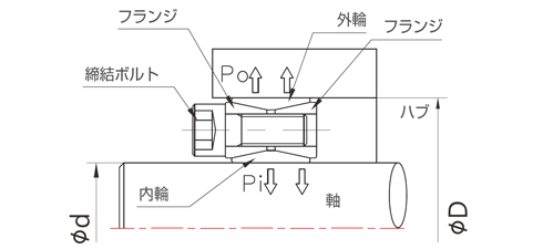 面圧を利用して軸とハブ(プーリー、ギア等)を同時に締結する
