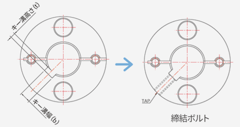 - クランプ締結方式にキー溝を使用する場合、ご要望に応じて対応可能