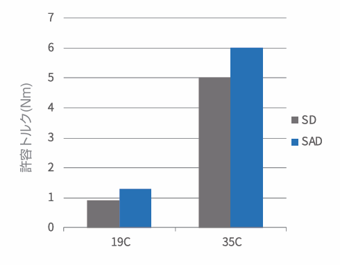 類似または同一外径サイズ対比トルク伝達力(耐久 性、強度)増大
