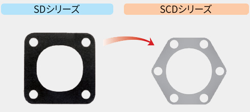 S C D シリーズ は、従 来 の 一 般ディスクカップリング(SDシリーズ)の板バネとハブの形 状を改善し、材質を変更することで強度と剛性を高めました。これにより軸締結時の高精密度取付け及び高速回転の実現が可能です。