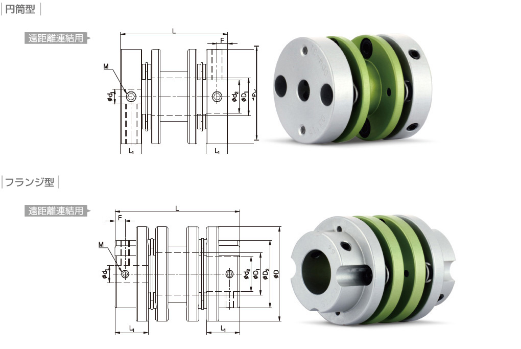 - 非標準規格の遠距離用ディスクカップリングも注文製作可能です。