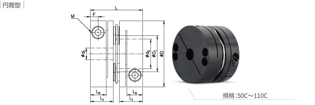 シングルディスク高トルク伝達用ディスクタイプカップリング