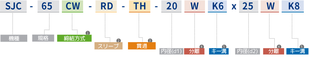 - SJCシリーズは中央のスリーブパラメーターにより動力を伝達するカップリングです。