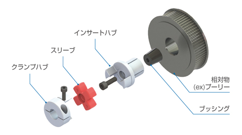 - プーリー/ギア/スプロケット/中空軸等に簡単に連結可能