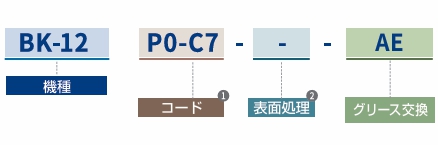 | ① コード | 表記(固定側のみ該当) | ベアリング精密度 | 予圧 |