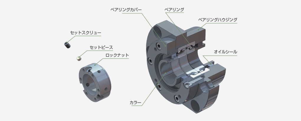 サポートユニットは、ボールねじの両軸端を精密に支持します。