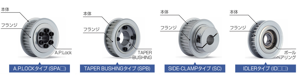 - A.P.LOCK、TAPER BUSHINGのフランジが外面に位置