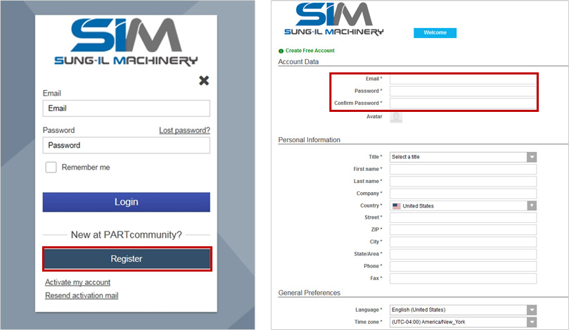 - 登録ボタンをクリックすると右図会員加入フォームが表示されます。