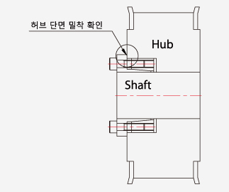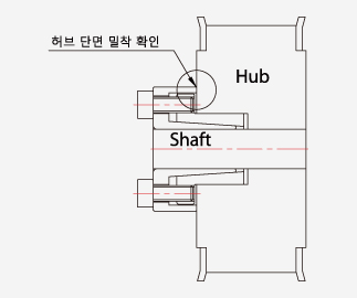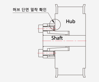 - 외륜의 Flange 부분과 허브의 완전 밀착을 확인 하십시오.