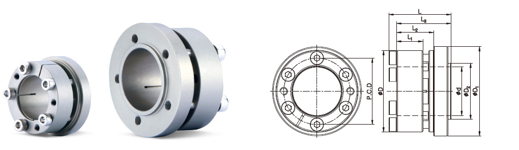 면압을 통해 축과 허브(풀리, 기어등)을 동시에 체결하는 동력전달
