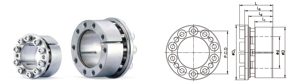 면압을 통해 축과 허브(풀리, 기어등)을 동시에 체결하는 동력전달