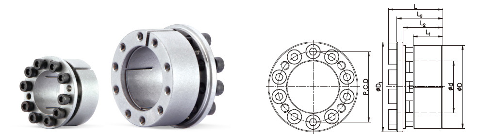 면압을 통해 축과 허브(풀리, 기어등)을 동시에 체결하는 동력전달