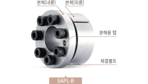 면압을 통해 축과 허브(풀리, 기어등)을 동시에 체결하는 동력전달 부품입니다. 고객의 다양한 Needs를 충족시키기 위한 다양한 규격, 재질, 표면처리 옵션을 보유하고 있습니다.