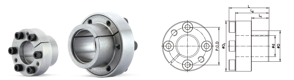 면압을 통해 축과 허브(풀리, 기어등)을 동시에 체결하는 동력전달