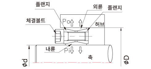 면압을 통해 축과 허브(풀리, 기어등)을 동시에 체결하는 동력전달