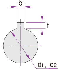 - 키홈 주문시 키홈이 필요한 내경(d)의 뒤에 K(키홈의 폭 = b)를 기재 바랍니다.