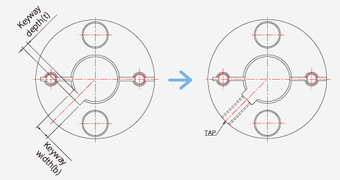 - 키 홈의 위치는 ㈜성일기공의 자체 설계 기준에 따라 정해집니다. 키홈 위치에 별도 지정이 필요 하신 경우 반드시 고객센터에 문의 바랍니다.