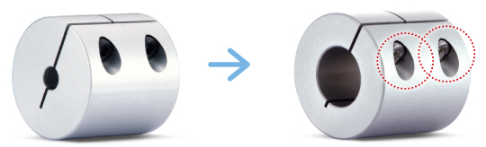 - 단, 이 경우 커플링의 허브 내경과 외경 사이의 두께가 얇아짐으로 내구성을 보장 할 수 없습니다.